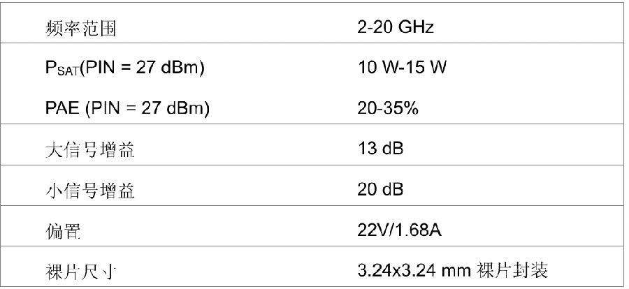 符合資格的客戶現在可獲取以下規格的 TGA2962 寬帶 10 W GaN PA 裸片。