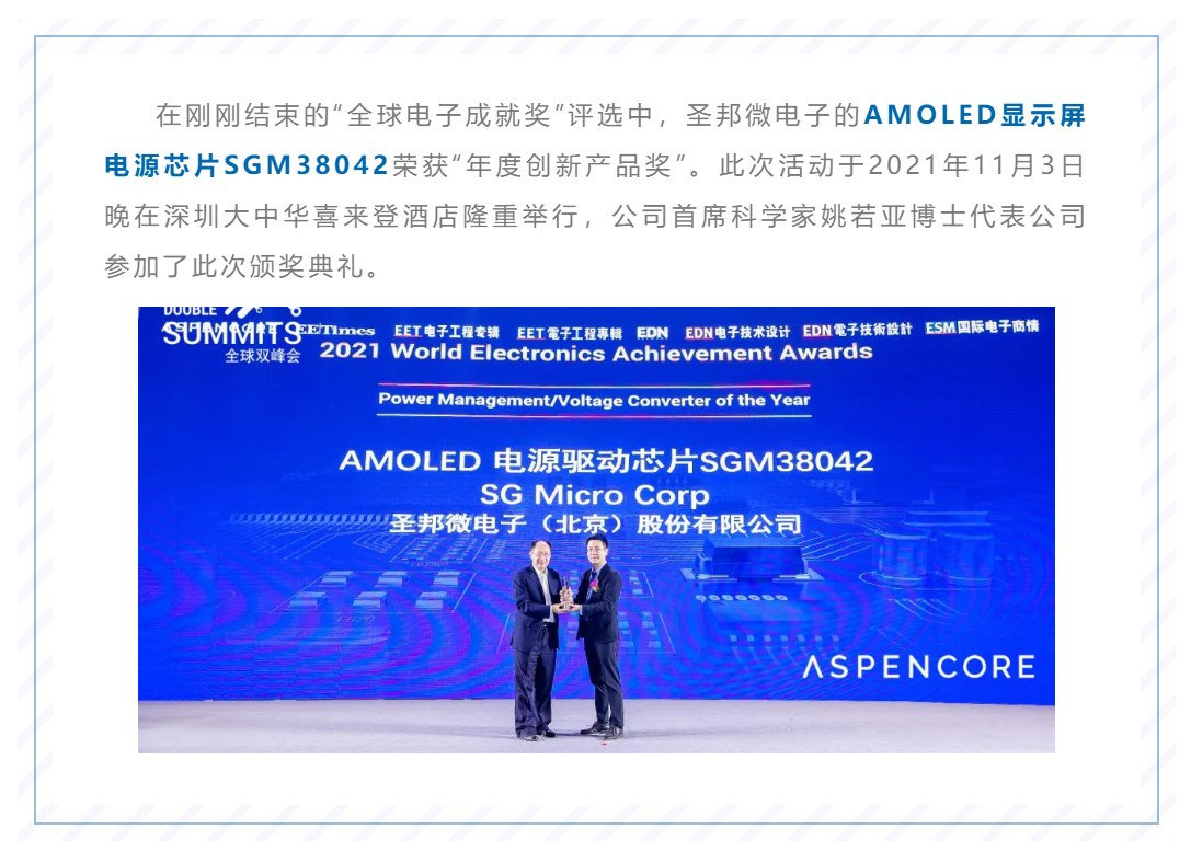 新聞 | SGM38042榮獲“年度創新產品獎”